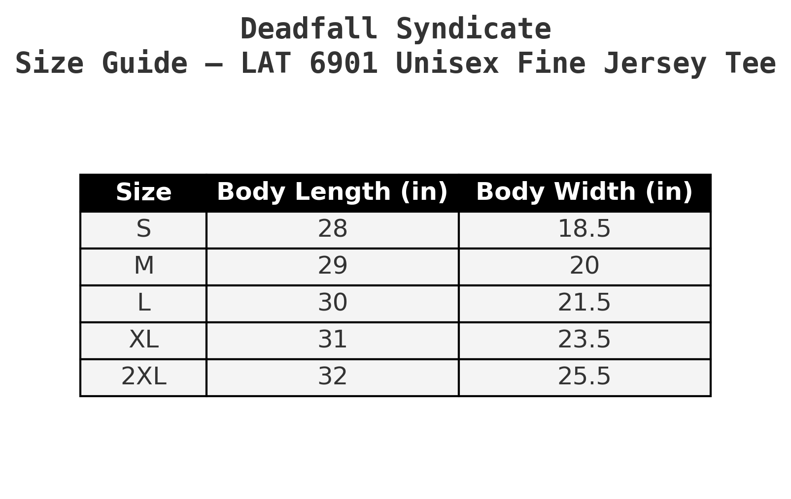 Built for comfort, designed to last. This Deadfall Syndicate tee is soft, durable, and ready for whatever the day throws at you. Whether you're training, hiking, or just laying low — this shirt fits the mission. 100% Cotton, may shrink more than blended Tee's. See photo for size reference. 5'9", 160lb male, shirt size in picture: Medium